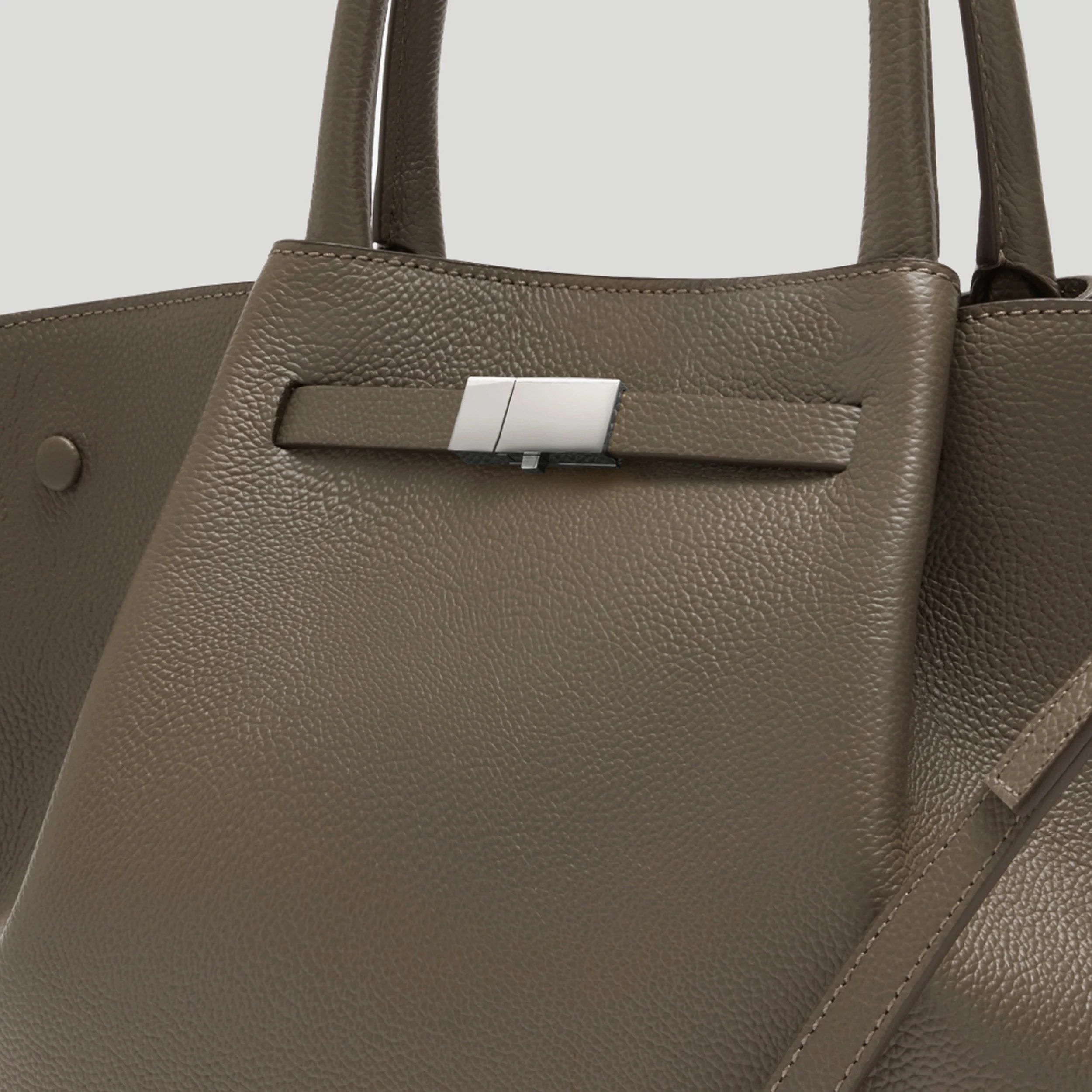 The Midi New York was inspired by our love for this amazing city, its energy, architecture and people. Its modern yet timeless silhouette and subtle luxury finish makes it the perfect day bag. The interior can be safely closed off with a central internal magnet. The comfortable tubular handles sit nicely in the crook of your elbow or can be held by hand. The base is constructed with triangular folds on each side and enhanced with metal feet. This bag is the perfect size to carry all essentials.